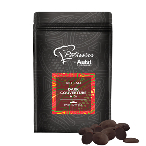This 61% dark couverture blends African and South American cocoa beans to deliver a well-balanced cocoa profile. Subtle tropical fruit notes, hints of coconut, gentle woody nuances, and brown sugar sweetness are finished with mild fruity acidity. Designed to provide strong visual impact while maintaining balanced flavour across pastry applications.
